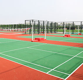 戶外田徑體育場包括籃球場、羽毛球場、排球場、網(wǎng)球場、田徑場、足球場和400米環(huán)形塑膠跑道,可以開展足球賽、籃球賽、網(wǎng)球比賽等項目的體育教學和訓練。